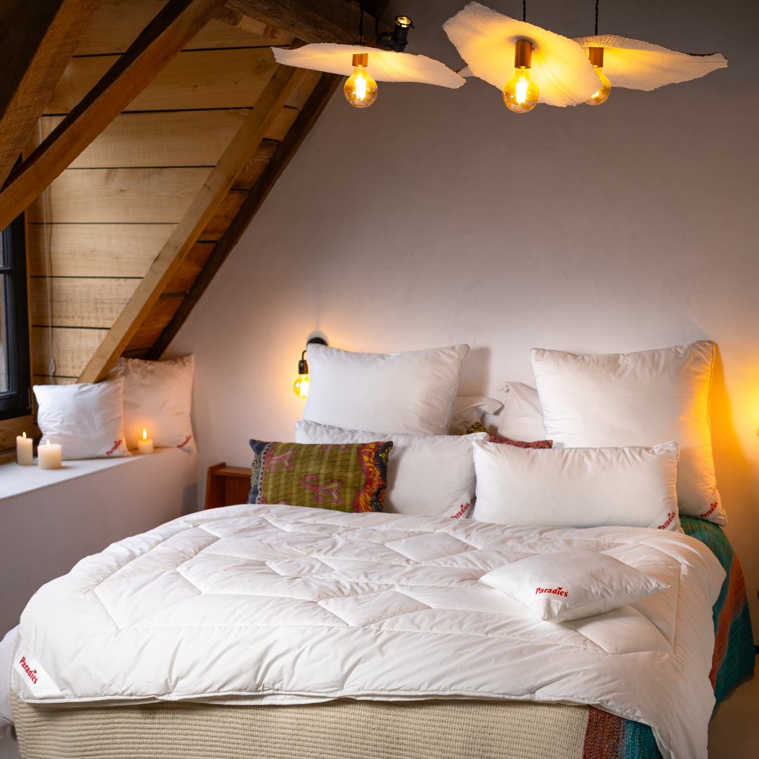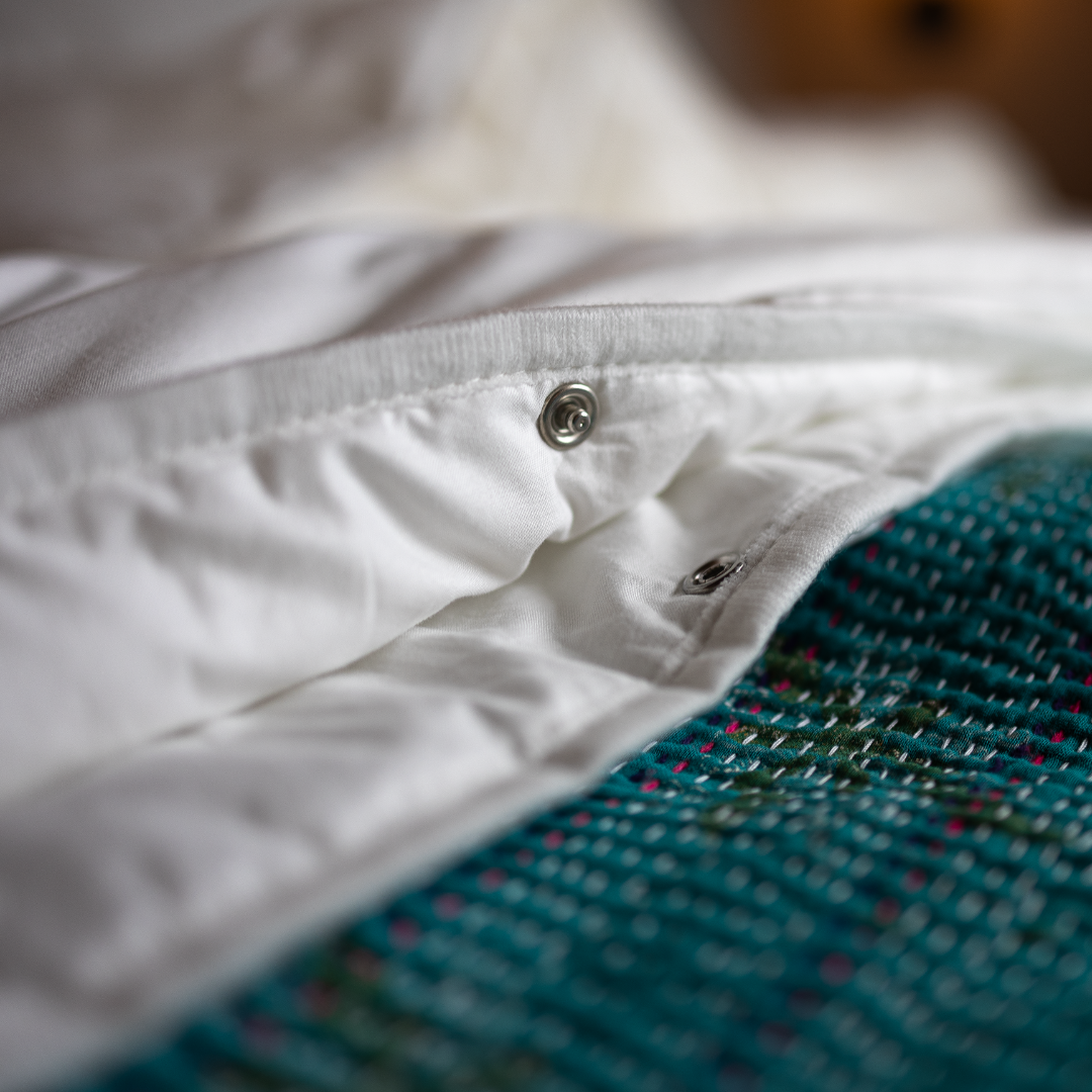 Die Vierjahreszeitendecke ist der individuelle Begleiter für das ganze Jahr. Der Bezug besteht aus 100% Bio-Baumwolle kbA.