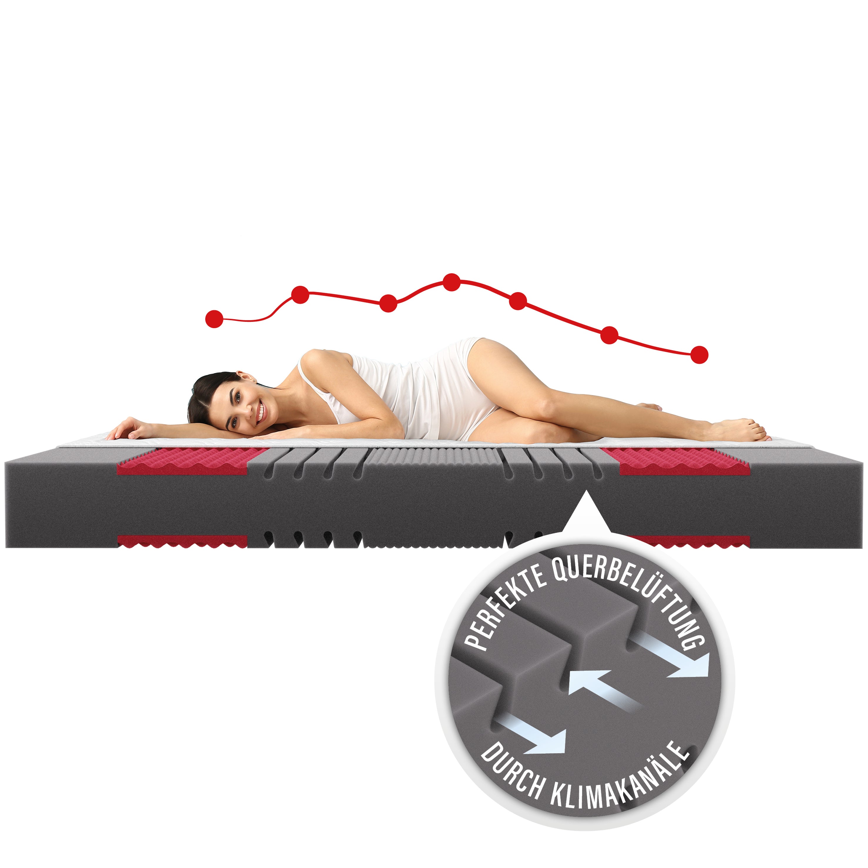 - 1 MEGACELL-Hybridschaum-Auflage für eine perfekte Druckentlastung & hervorragender Unterstützung.