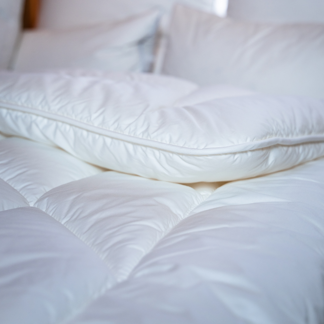 Das kuschelige Winterbett steht für eine daunenähnliche Leichtigkeit und schenkt höchsten Schlafkomfort mit seinem luxuriösen Bio-Baumwoll-Gewebe.