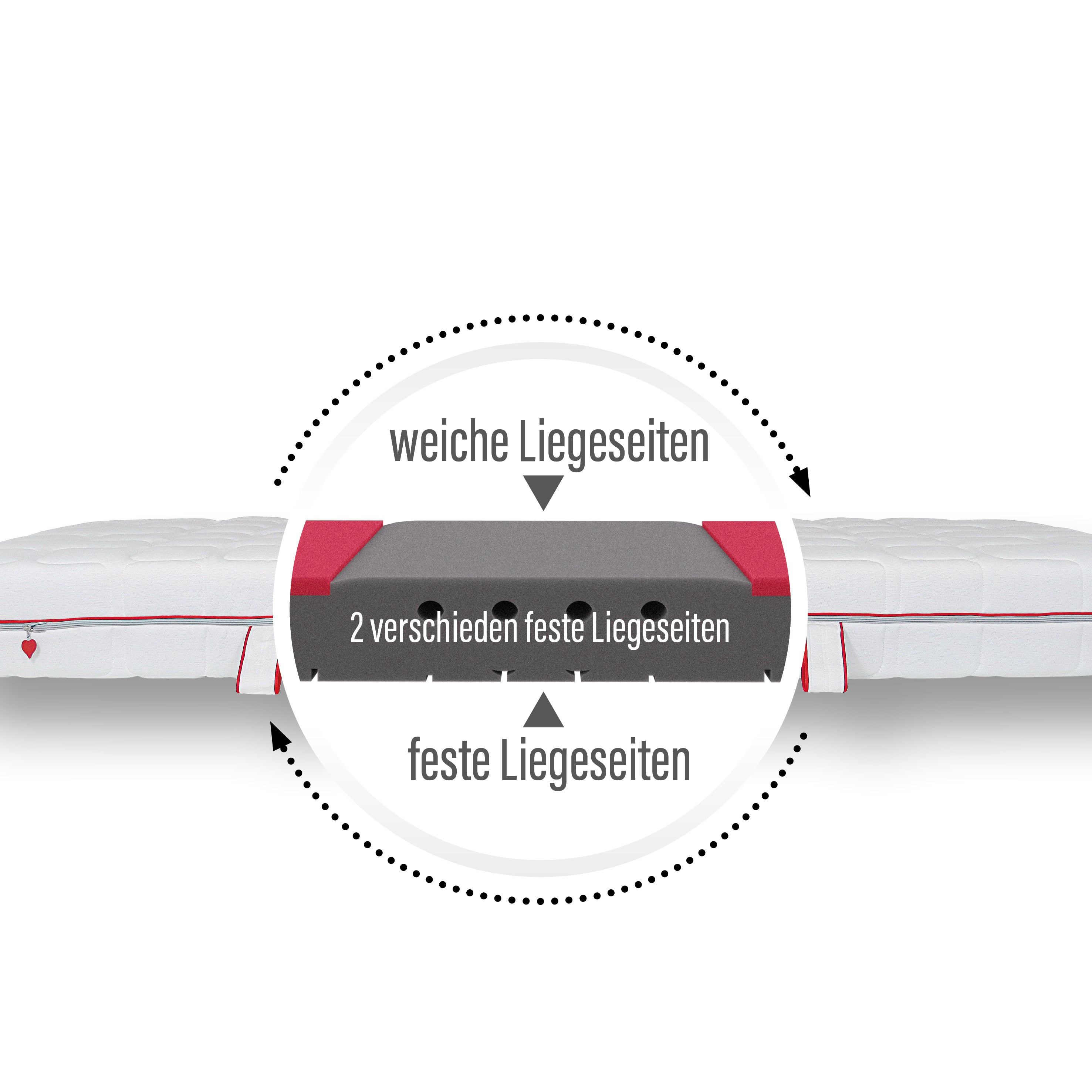 - 2 Punktelastischer Paratex-Kaltschaum-Kern, der sich individuell an Körperkonturen anpasst und gezielt Druck entlastet.